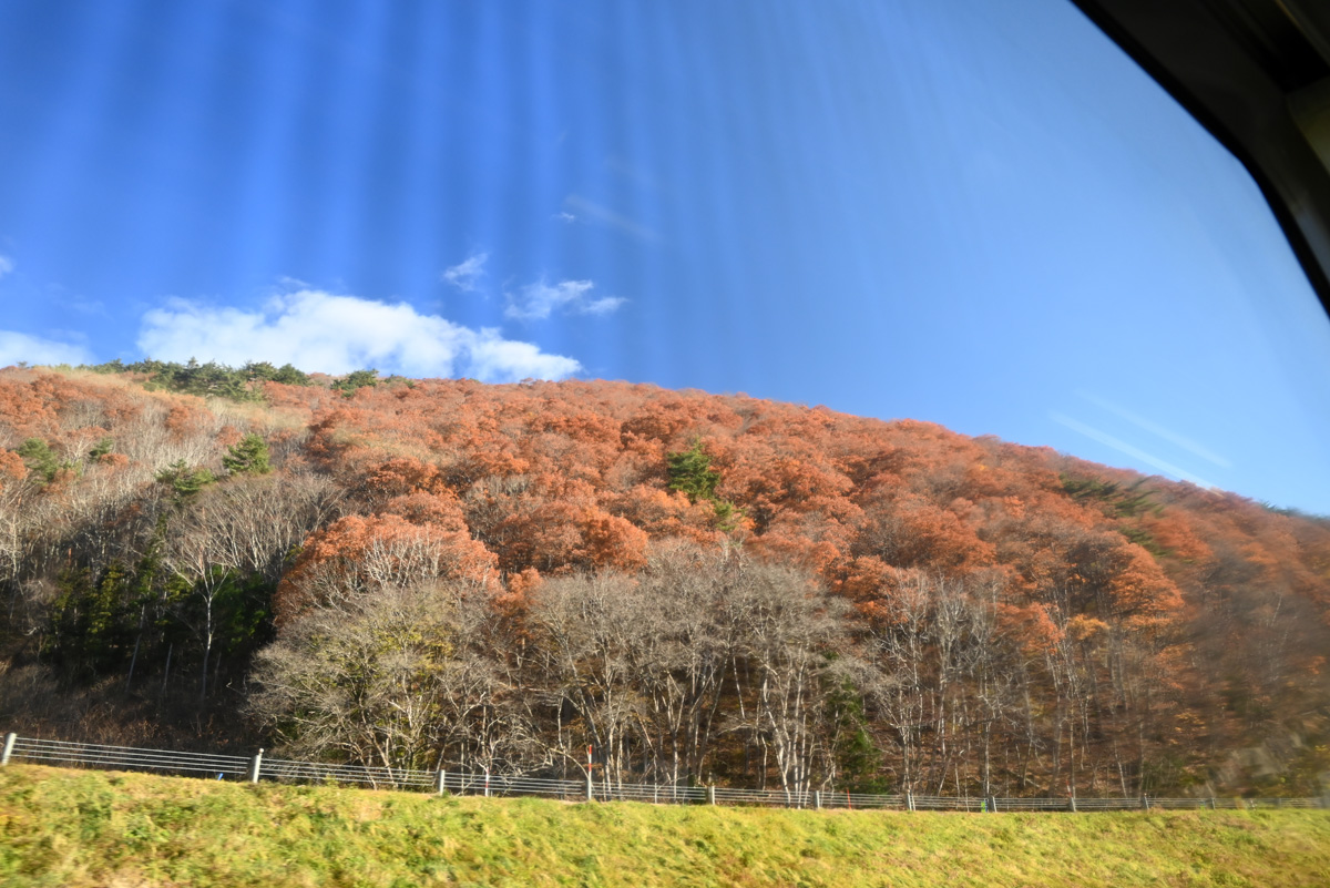 落葉の安比高原を列車は登っていく。登っていくと次第にエンジンは唸り、すぐに空転の悲鳴を上げだした。車輪空転の事態に私は手に汗を握り、頑張れ花輪線、頑張れ! 揺れる車内から声援を送る他に、何の術を持たない私の横を車掌が通り過ぎていった。地に足をつけたように踏ん張り、動じることなく検札の業務をこなしていく、そのショートカットの車掌は、スピードスケートのメダリストを彷彿とさせただけでなく、遠野へ行ったときの快速列車で検札された記憶まで呼び起こした。そうか、釜石線もまだ残っていたか。