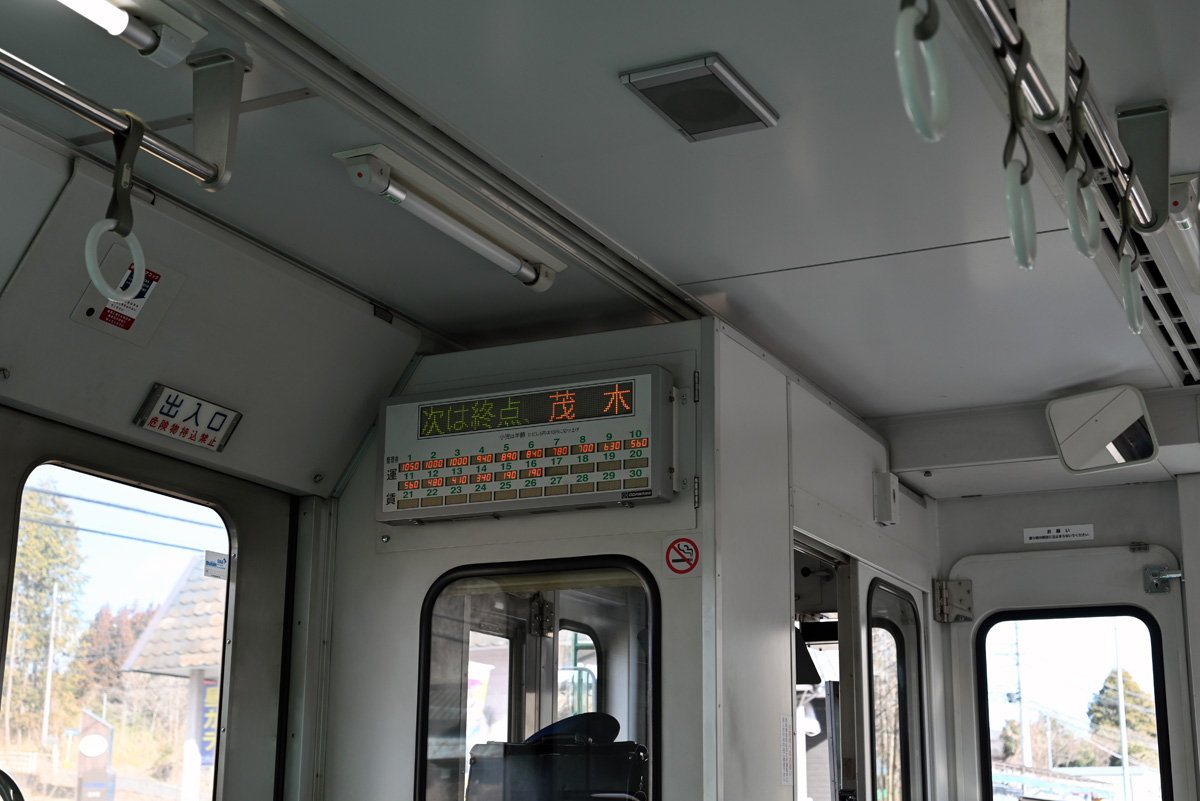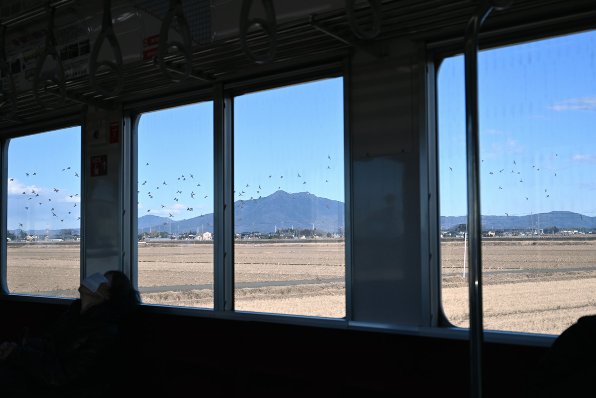 一両の列車は、ひたすら畑の中を走る。あれ? 臨海工業地帯の中を行くものだと大きく勘違いしたまま、ひたすら畑の中を走る。家屋は平屋が多い。たまに防風林の中を走り、海が見えると期待させるも、水戸まで乾燥肌のような畑の中を行った。