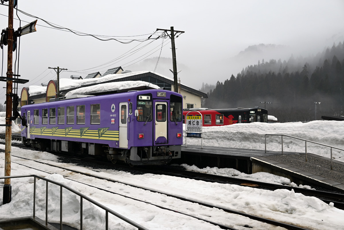 翌朝、始発の内陸線に乗車。前回は列車転覆事故、その後も内陸線は災害級の大雪、おまけに除雪車の故障という苦難に見舞われており、しばらく運休が続いていた。余程乗ってくれるなという、ご加護を払い除けての高架橋や、見るからに雪崩の巣窟には手に汗を握ったが、なんとか終点の角館に到着。