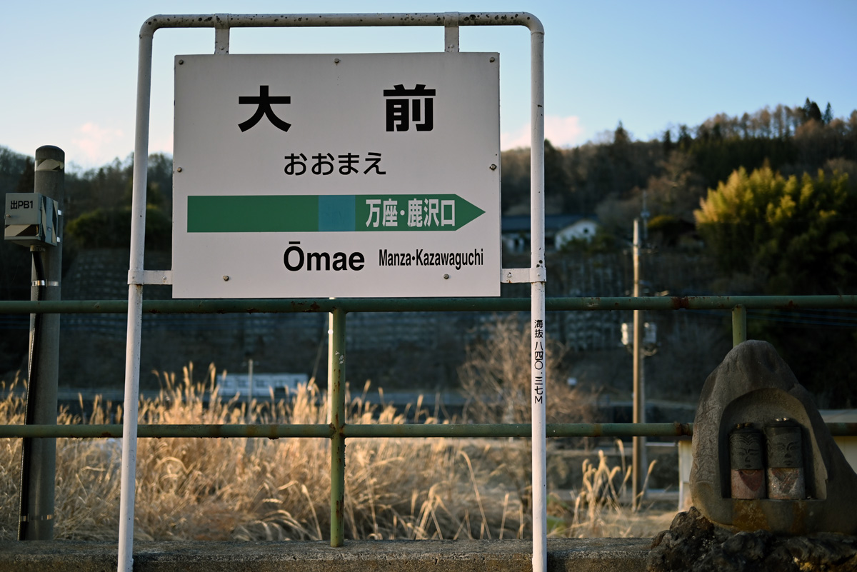 昼間に大前へ行く列車はなく一旦、長野原草津口駅から草津温泉へ向かい、夕方に駅舎へ戻ってきて、終点大前まで吾妻線を完乗。煙を吐いたような雪山が、ちらりと車窓から覗いたが、草津白根山だったろうか。草津の熱湯に頭と体を相当鍛えられたといえども、急に不安になった。