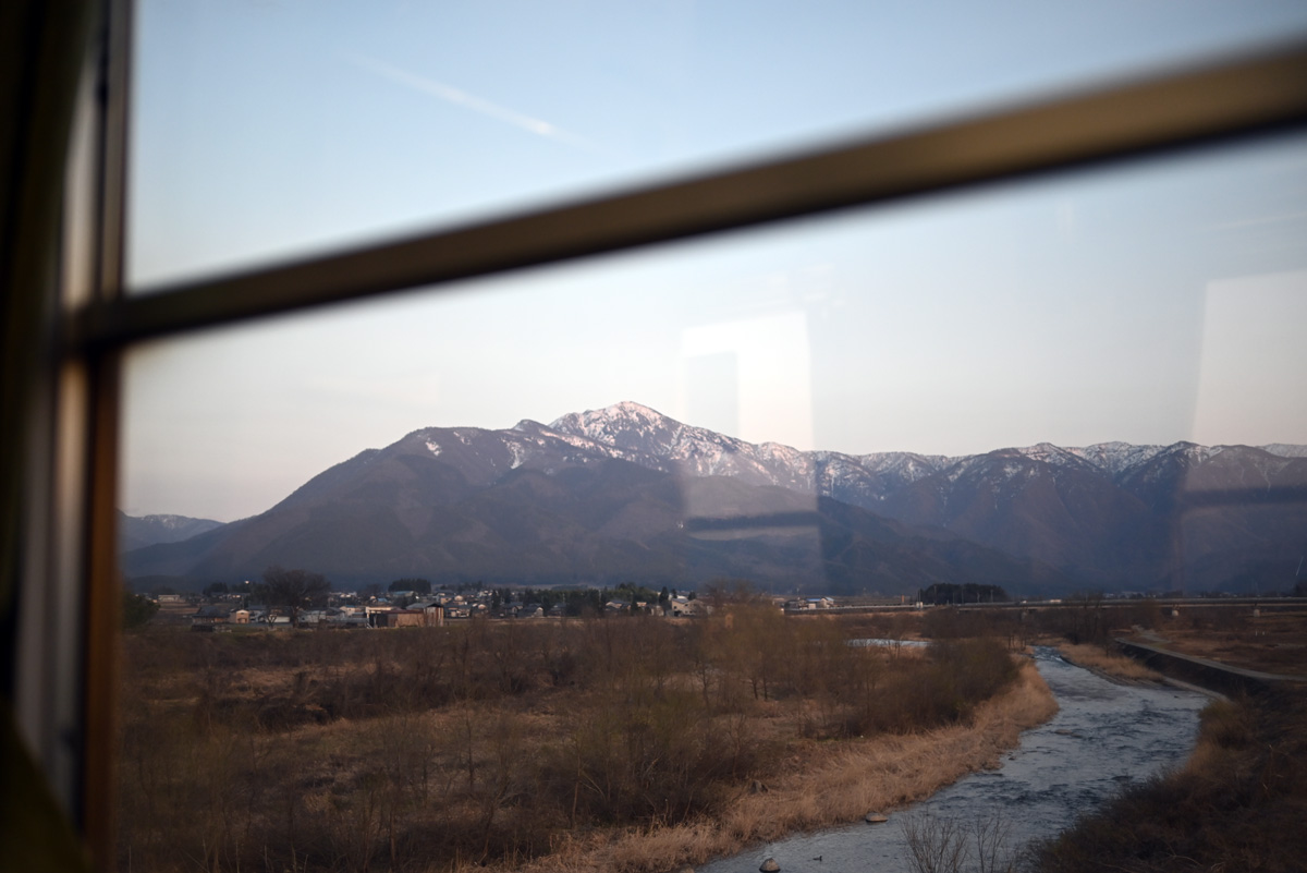 よく晴れた日で、左窓には剱岳に立山、何より白く壮大に盛られた薬師岳の、美しいことといったら形容しがたい。いつまでも飽き足らず見惚れていると、油田という駅に着いた。越中はこんなに平和なのに、信じられないくらい世界情勢は危うい。だというのに私も、のんびりディーゼル列車に揺られて、日本の名山を車窓に並べている。